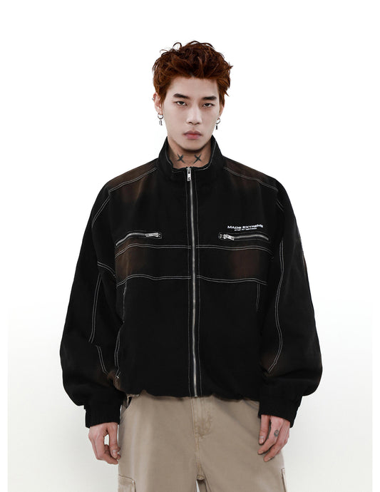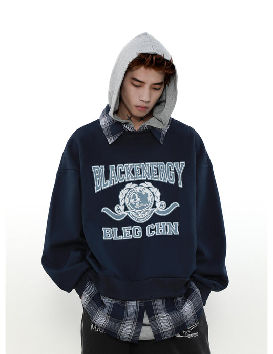 アメリカンレトロ フェイクツーピース フード付き スウェット P847