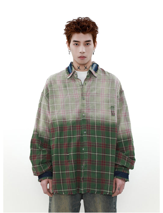 アメリカンデザイン グラデーション チェック柄シャツ P848