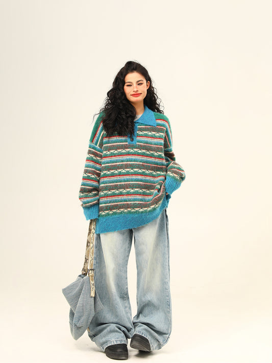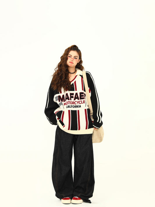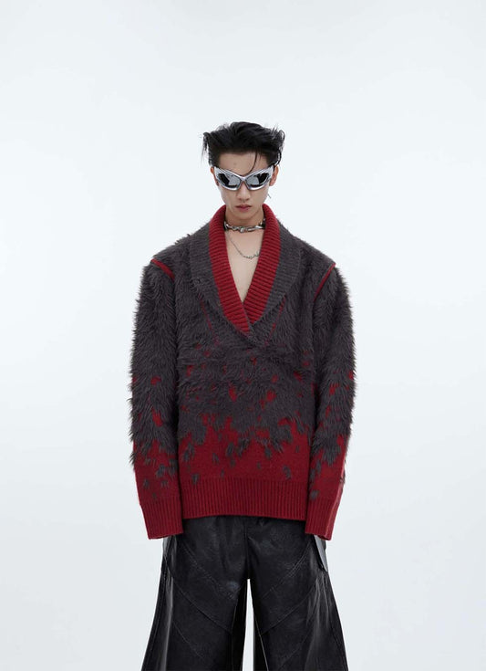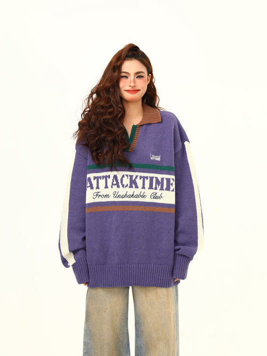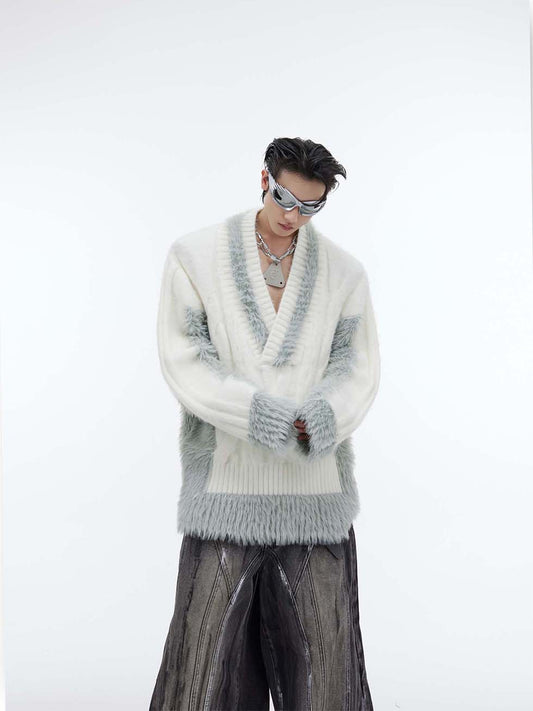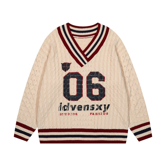 カレッジスタイル Vネック ツイストニットセーター P1904