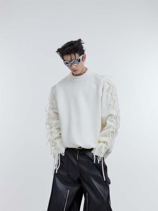 タッセルデザイン プリーツラウンドネックセーター P1023
