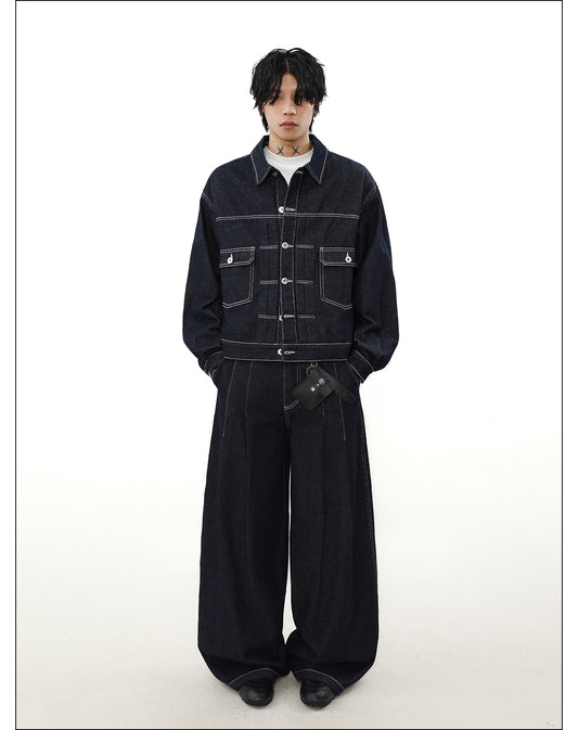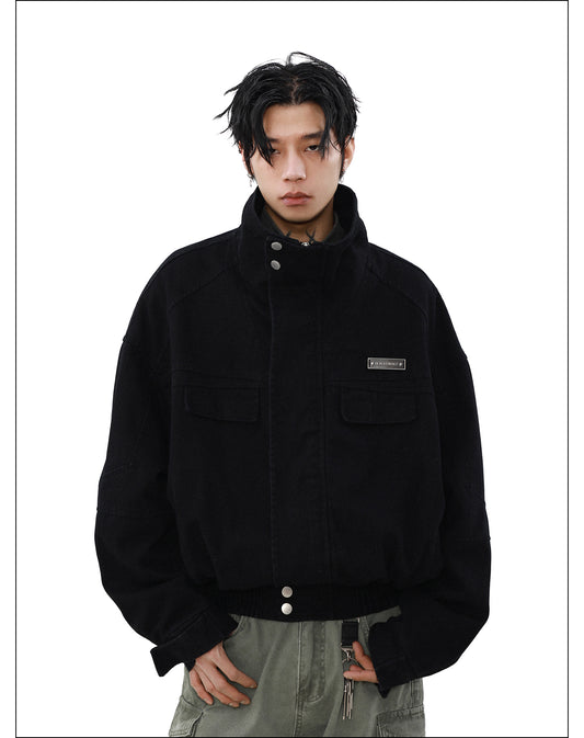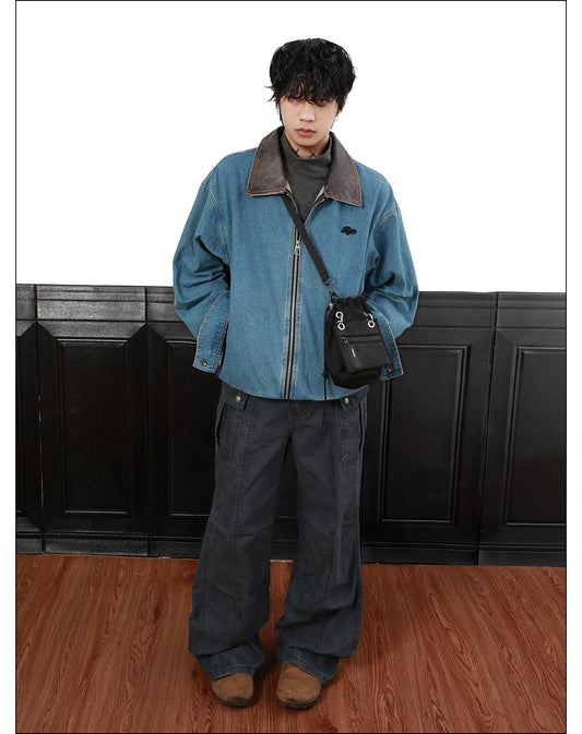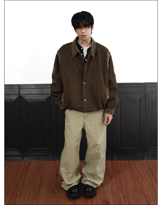 レトロ ラペル パッチワーク デニムジャケット P1938