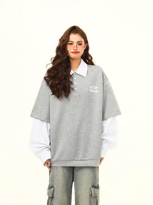 フェイク ツーピース ポロ スウェットシャツ P1804