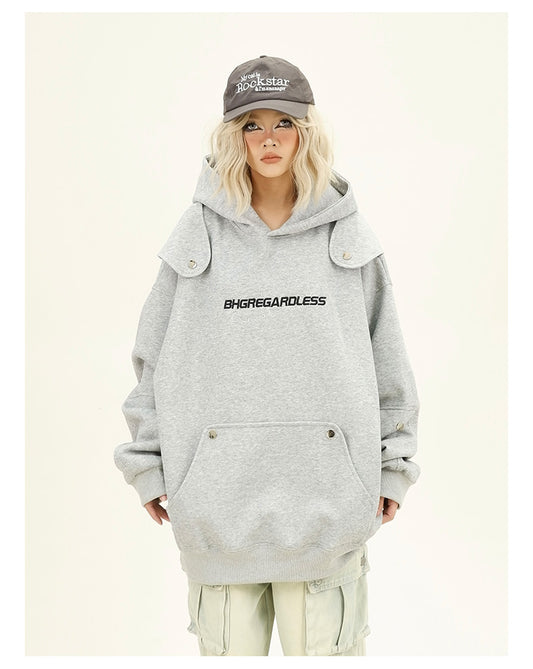 ストラップファー襟 フード付きスウェットシャツ P1844