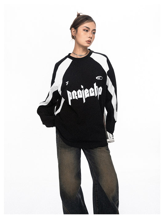 Color blocking round neck long sleeve T-shirt P692