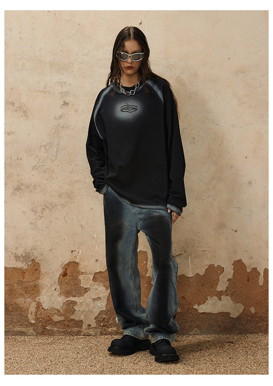 レトロ ダメージ加工 長袖 Tシャツ P1382