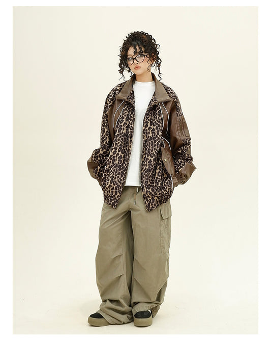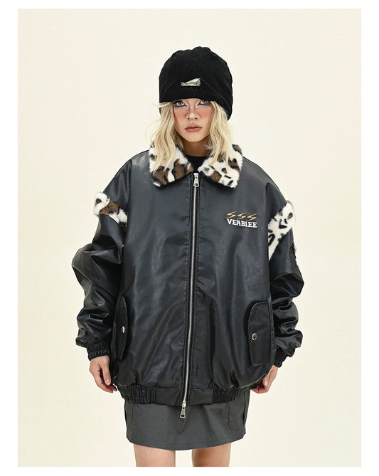 Sold outヒョウ柄ステッチ PU レザージャケット P1796
