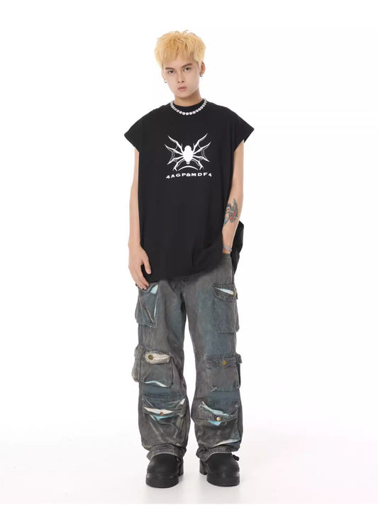 Sold outダメージ加工 マルチポケットジーンズ P1446