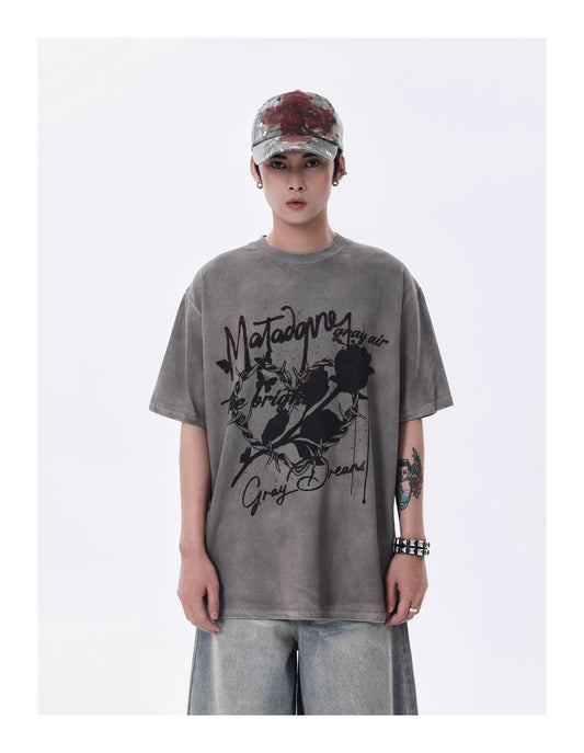 Sold outスプレーペイント ダーティウォッシュ 半袖Tシャツ P1458
