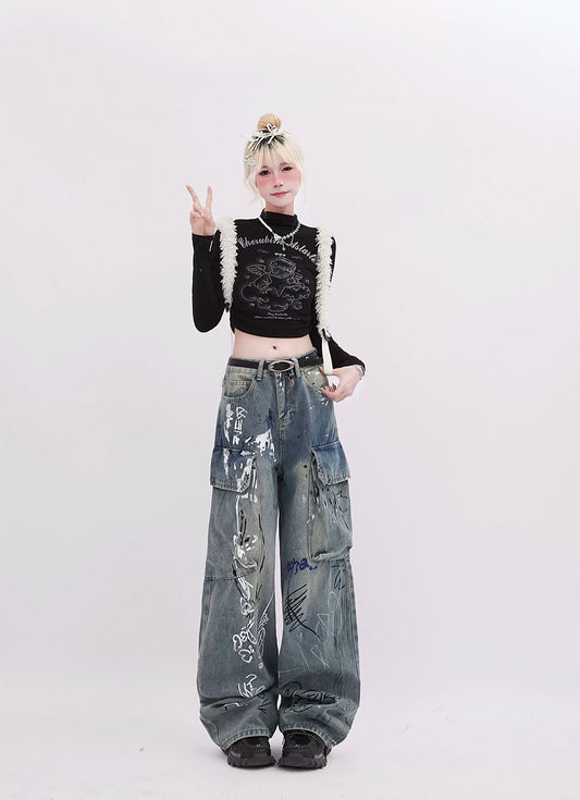Sold outGraffiti Multi-Pocket Jeans P969
