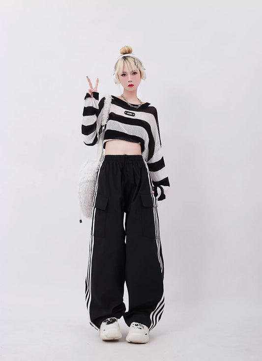 Side Stripe Splicing Straight Pants P962