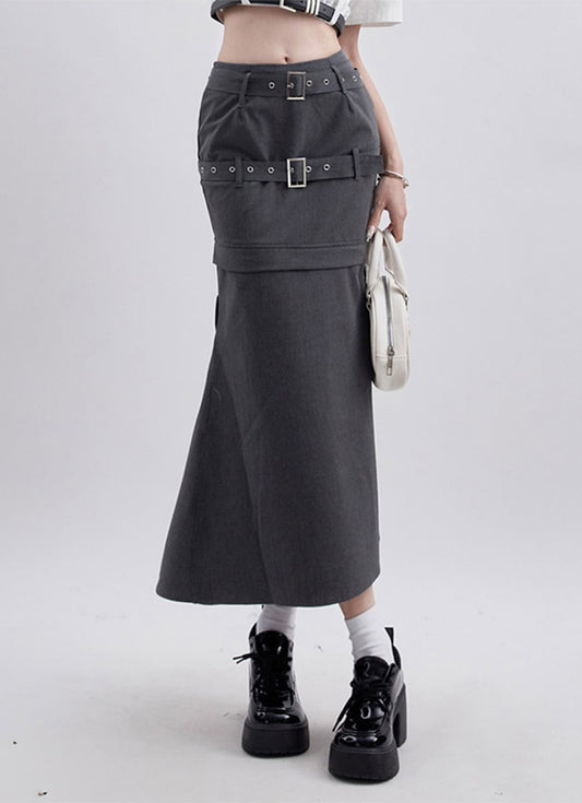 Double belt, zipper removable slim long skirt P971