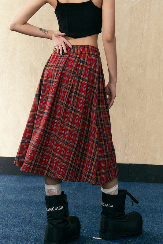 Mid-length check pattern A-line skirt P825