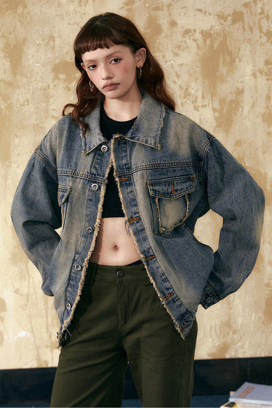 American retro washed distressed denim jacket P813
