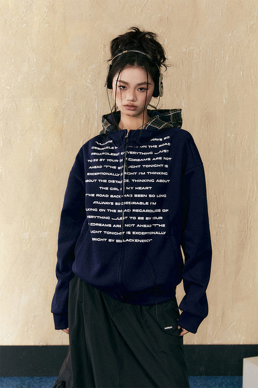 Letter print hooded zip sweatshirt P816