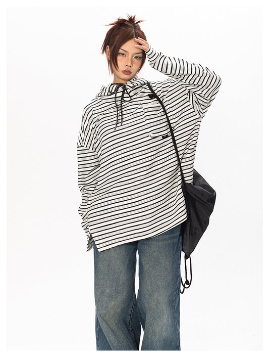 Striped contrast color hooded T-shirt P761