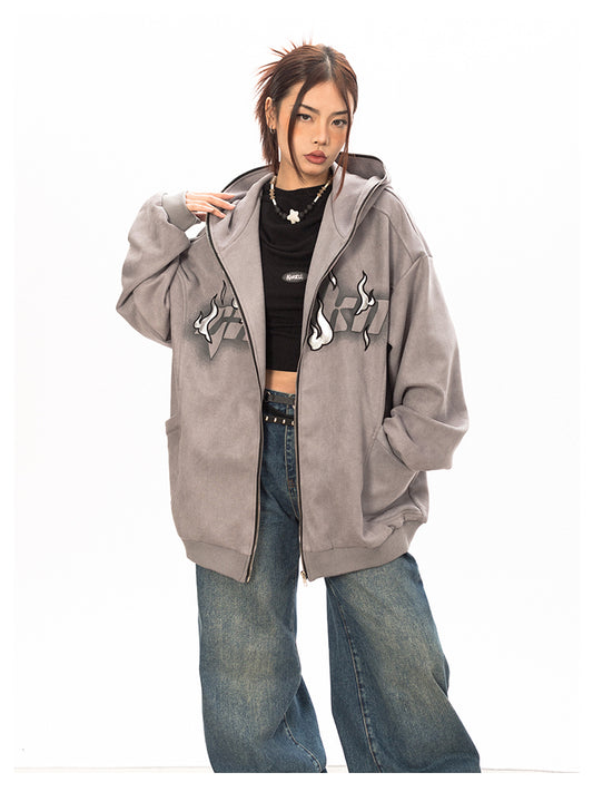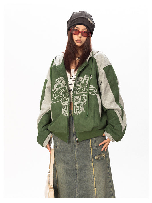 Sold outHooded Print Short Suede Jacket P760