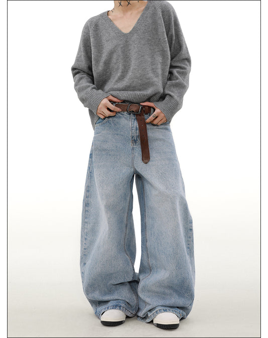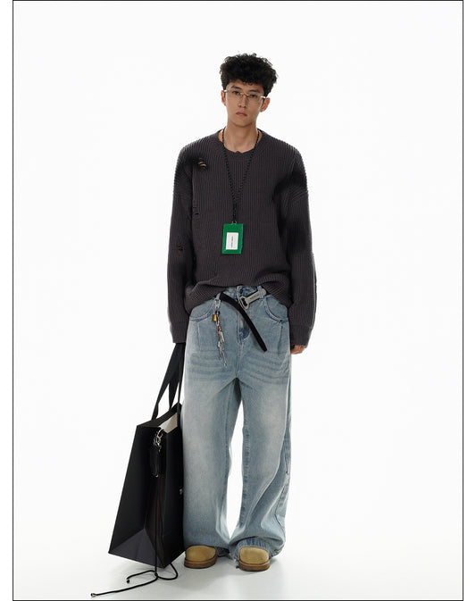 ウォッシュ加工 シンプル ストレートジーンズ P1859