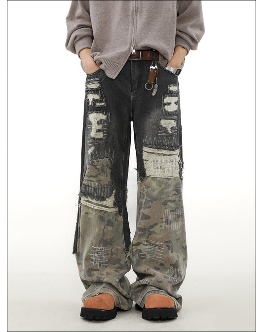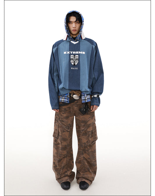 レトロ ラペル パッチワーク デニムジャケット P1938