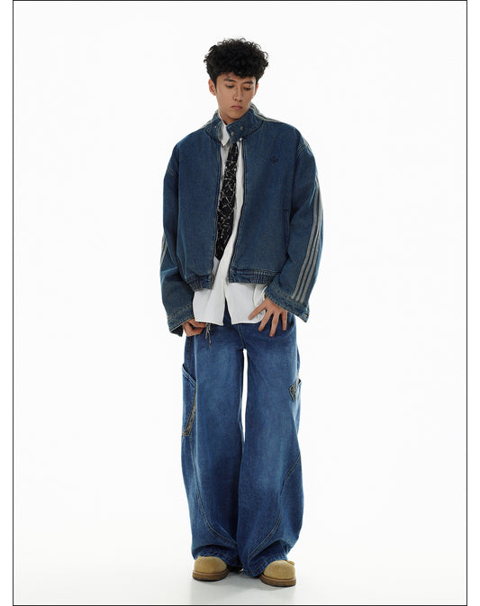 Sold outウォッシュ スタンドカラー 刺繍デニムジャケット P1864