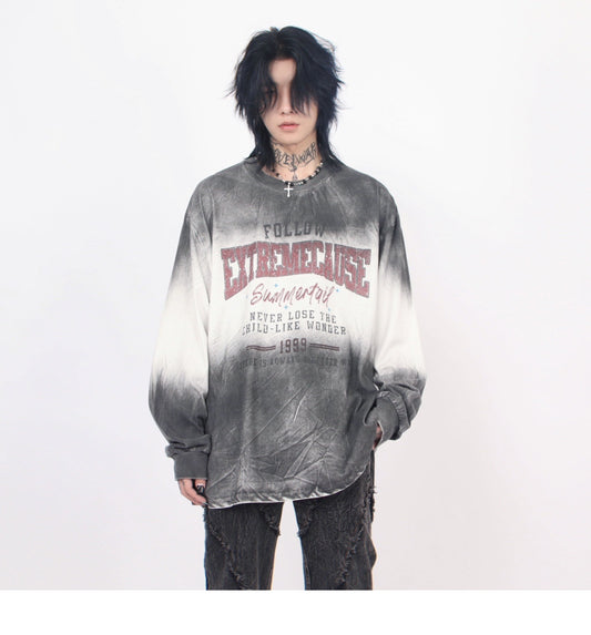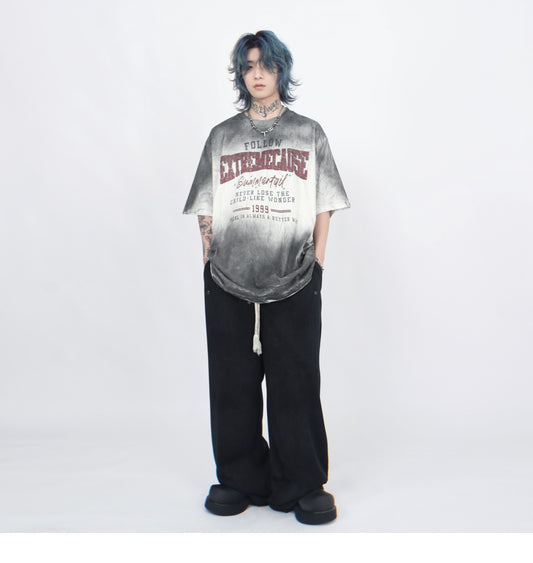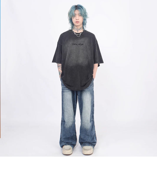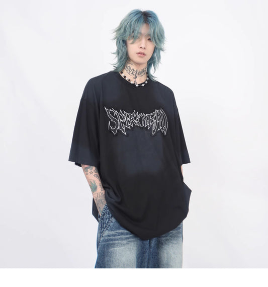 Aged wash letter embroidered short sleeve T-shirt P1367
