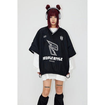 2-way V-neck layered casual sweatshirt P545