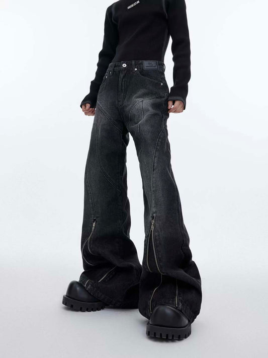 ジッパーデザイン マイクロフレアジーンズ P1004
