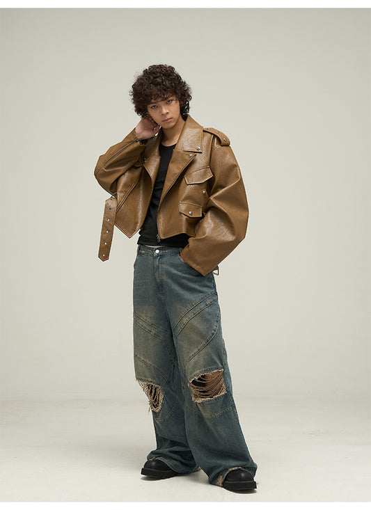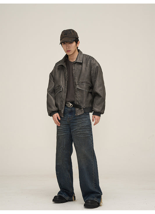 ルーズストレートウォッシュドマルチポケットデニムパンツ P609