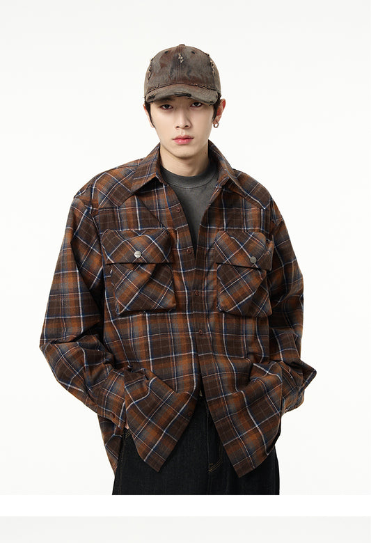 アメリカンレトロ ポケット チェック柄 長袖シャツ P1413