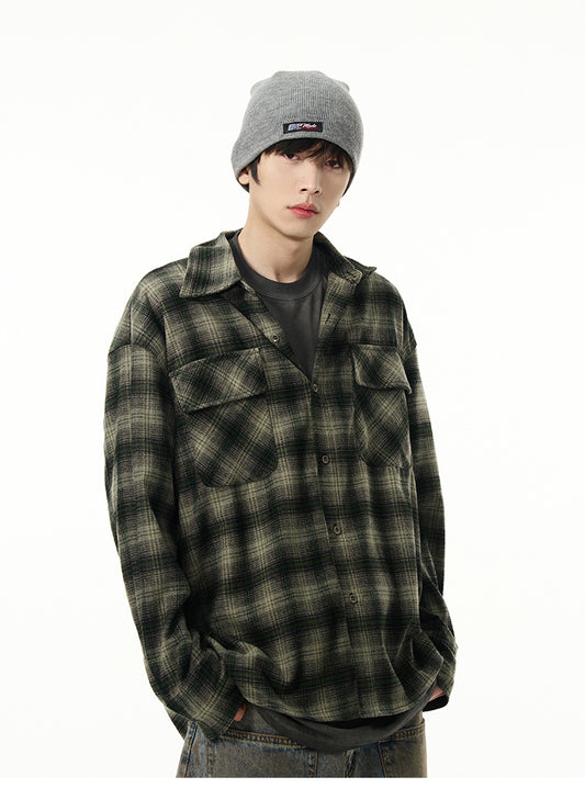 グラデーション チェック 柄 長袖シャツ P1419
