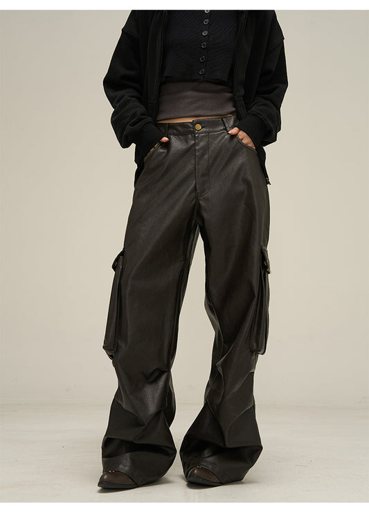 売り切れワイドレッグ レザーパンツ P1407