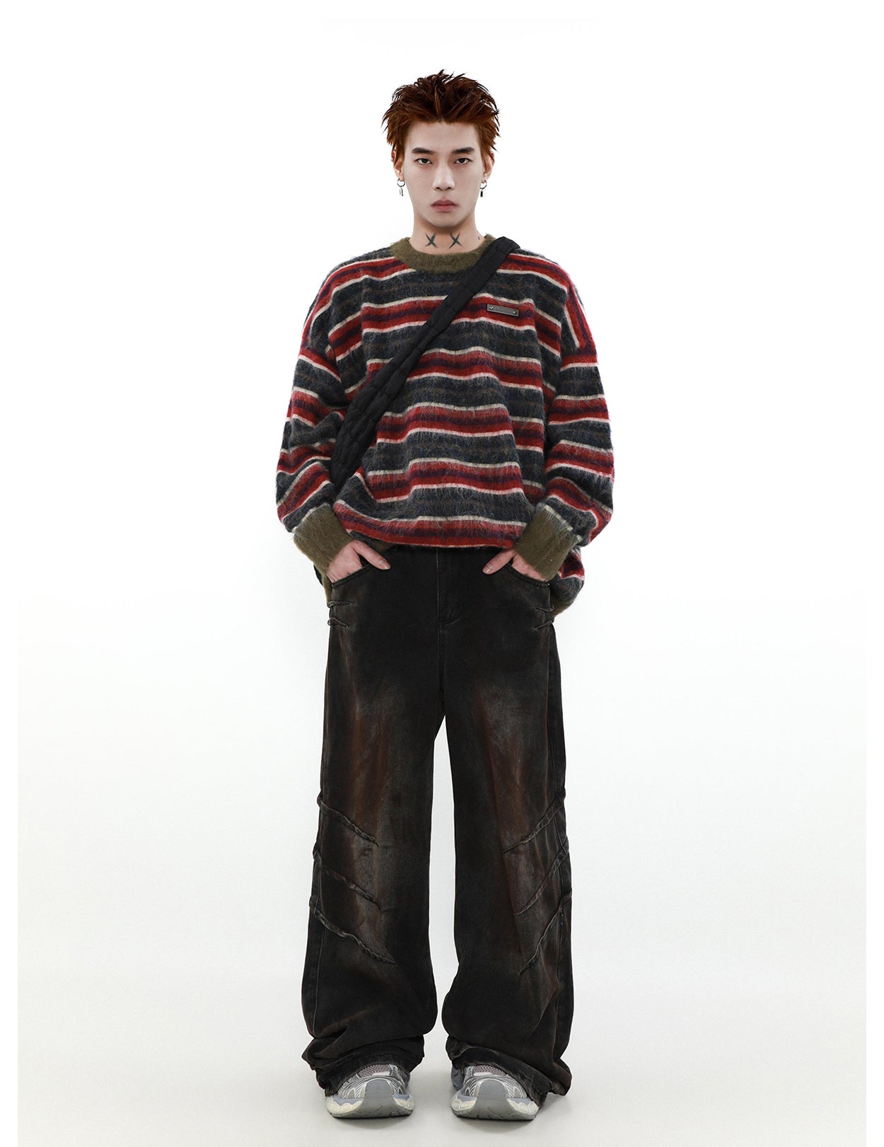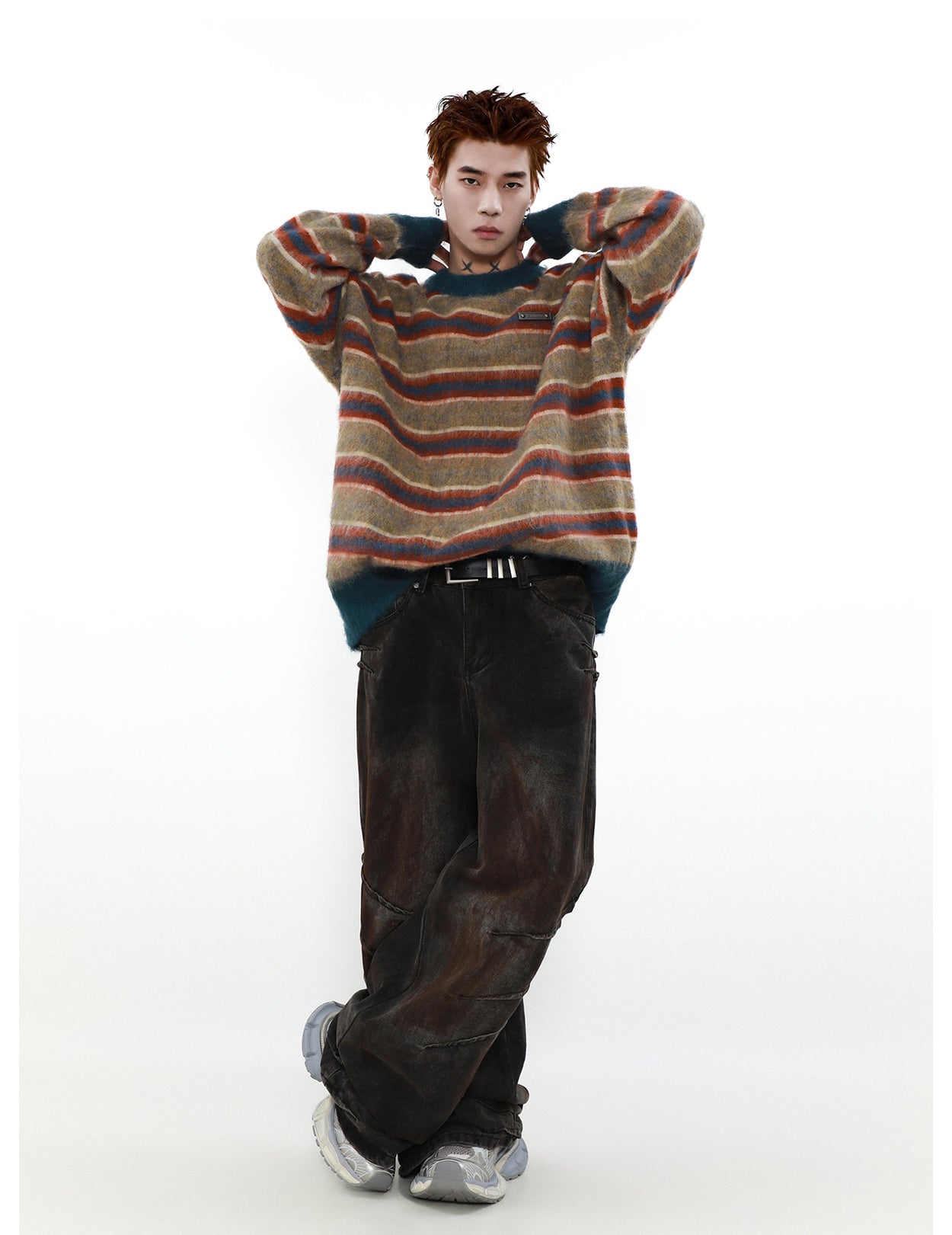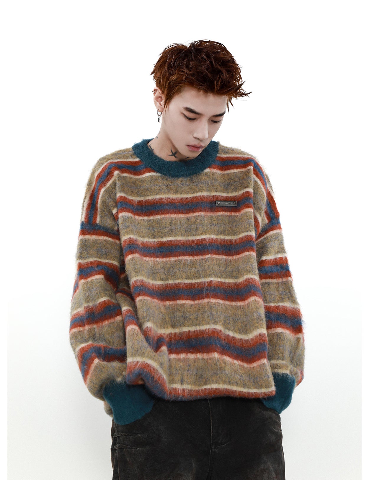 アメリカンレトロ コントラストカラー ストライプセーター P867