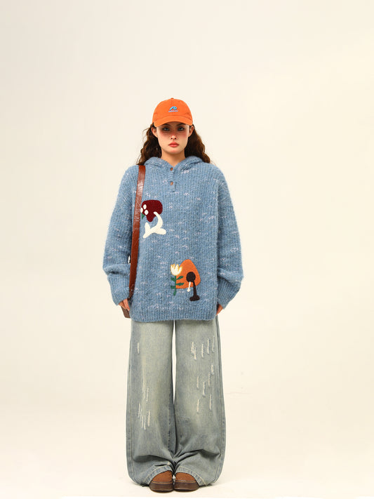 刺繍 フード付きセーター P1908